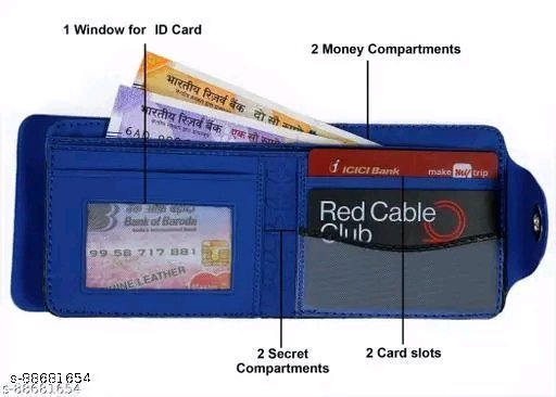 Wallet Purse for Men Gents with Card Slots – Product Overview To place all your monetary essentials safe and secure you can always count on this simple yet versatile and durable Wallet – For Men. , this wallet makes sure all your possessions obtain sturdy support while you are on the move. The compact and organized interiors of this wallet allow for an orderly segregation of your cash, cards and bills. These interiors comprise of two compartments, offering ultimate convenience and comfort while use. The smart Bi fold design of this Wallet – For Men allows you to easily slip it into your pocket while you are set to go outdoors for the day. Besides this, the wallet is also equipped with ID window slots, credit card slots. This wallet is lightweight and hence is effortlessly portable on the move. Be it a weekend get together with friends or late night dinner outdoors with family, this wallet could be the ideal pick for you.