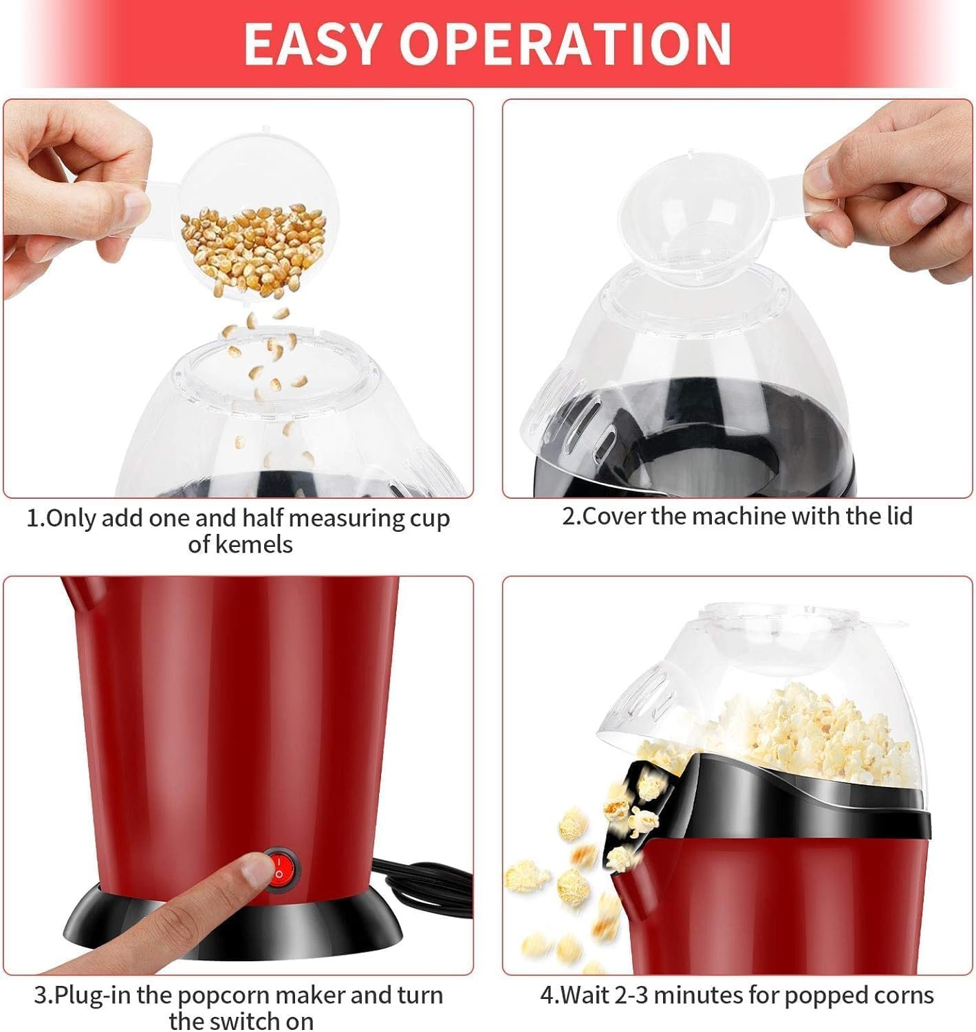 Name : Oil Free Hot Air Popcorn Cookware, Home Use Electric Mini Popcorn Maker Machine